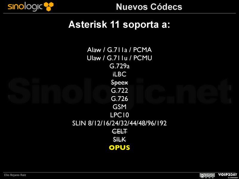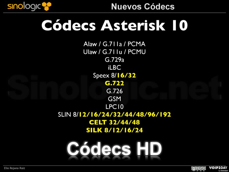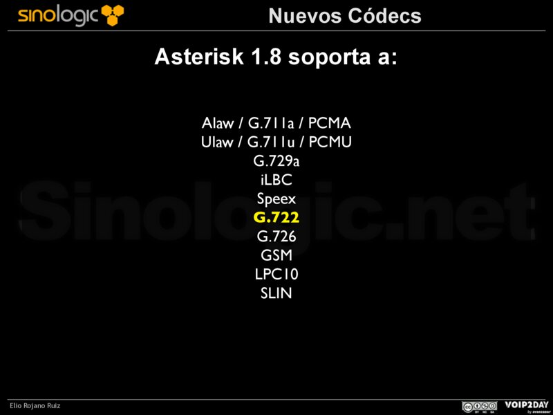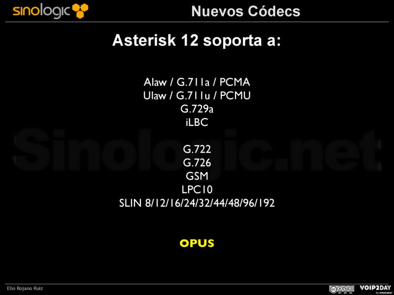 Nuevos Códecs Asterisk 12 soporta a: Alaw / G.711a / PCMA Ulaw / G.711u / PCMU G.729a iLBC Sinologic.net