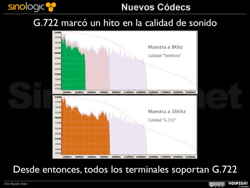 Nuevos Códecs G.722 marcó un hito en la calidad de sonido Sinologic.net Desde entonces, todos los terminales soportan G.722 Elio Rojano Ruiz