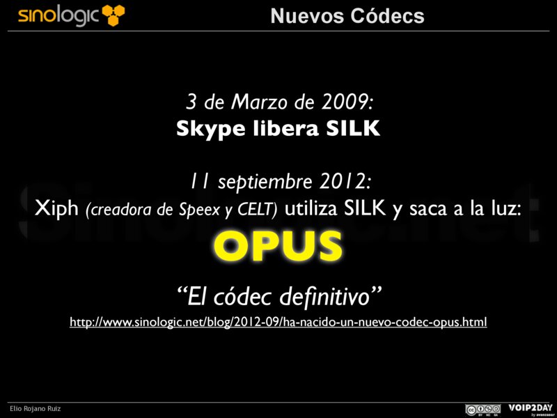 “El códec definitivo” http://www.sinologic.net/blog/2012-09/ha-nacido-un-nuevo-codec-opus.html Elio Rojano Ruiz