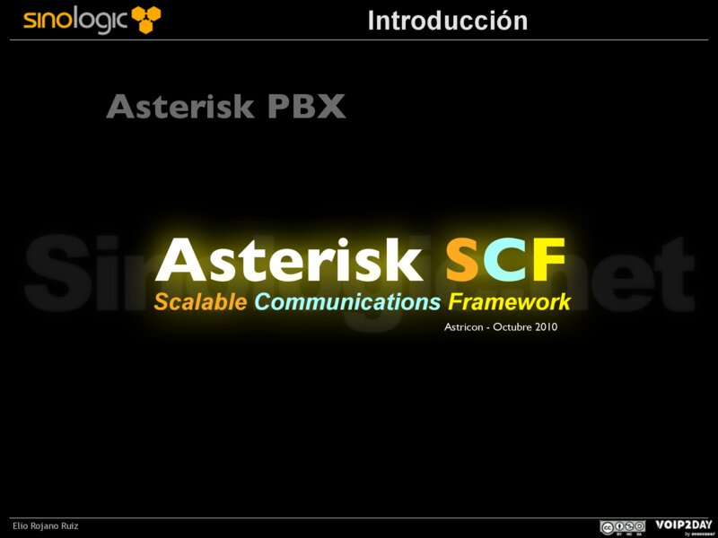 Introducción Asterisk PBX Sinologic.net Asterisk SCF Scalable Communications Framework Astricon - Octubre 2010 Elio Rojano Ruiz