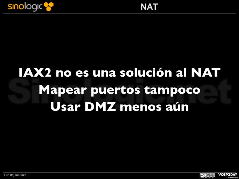 NAT Sinologic.net IAX2 no es una solución al NAT Mapear puertos tampoco Usar DMZ menos aún Elio Rojano Ruiz
