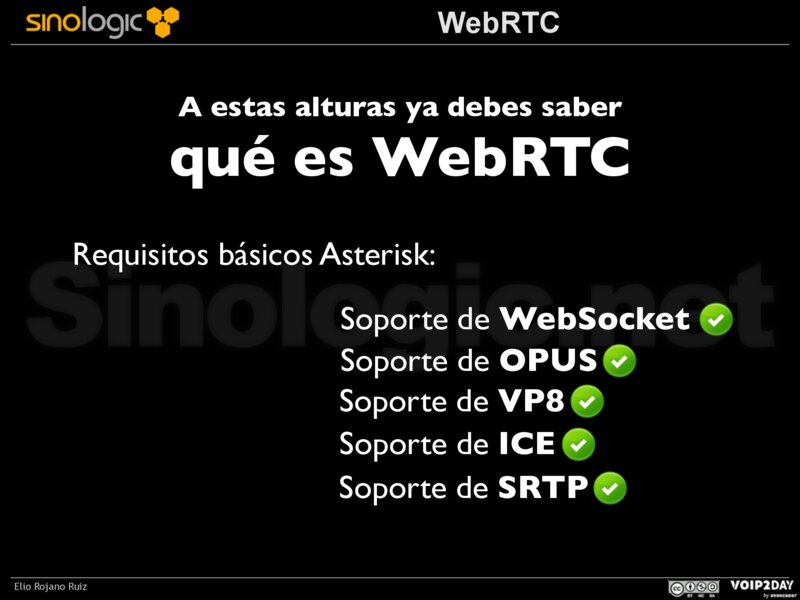 WebRTC A estas alturas ya debes saber qué es WebRTC Sinologic.net Requisitos básicos Asterisk: