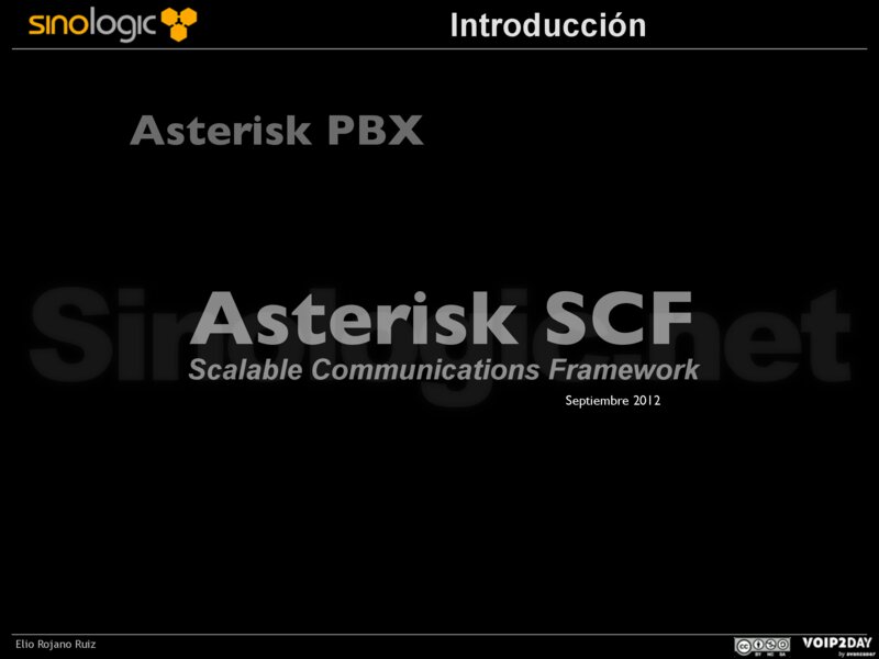 Introducción Asterisk PBX Sinologic.net Asterisk SCF Scalable Communications Framework Septiembre 2012 Elio Rojano Ruiz