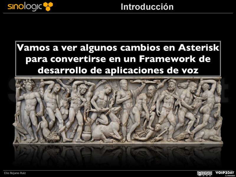 Introducción Vamos a ver algunos cambios en Asterisk para convertirse en un Framework de desarrollo de aplicaciones de voz Sinologic.net Elio Rojano Ruiz