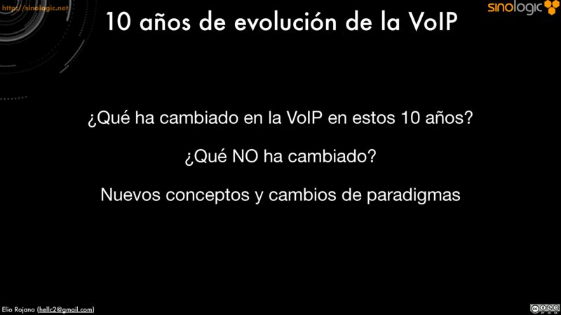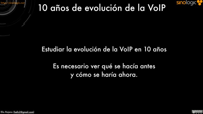 http://sinologic.net 10 AÑOS DE VOIP CONOCER EL PASADO PARA PRONOSTICAR EL FUTURO Elio Rojano | @hellc2 http://www.sinologic.net | @sinologicnet Elio Rojano (hellc2@gmail.com) http://sinologic.net twitter.com/hellc2 facebook.com/rojano linkedin.com/in/rojano sinologic.net github.com/hellc2 Elio Rojano…