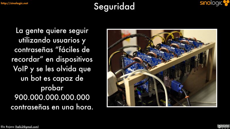 http://sinologic.net La gente quiere seguir utilizando usuarios y contraseñas “fáciles de recordar” en dispositivos VoIP y se les olvida que un bot es capaz de probar 900.000.000.000.000 contraseñas en una hora.