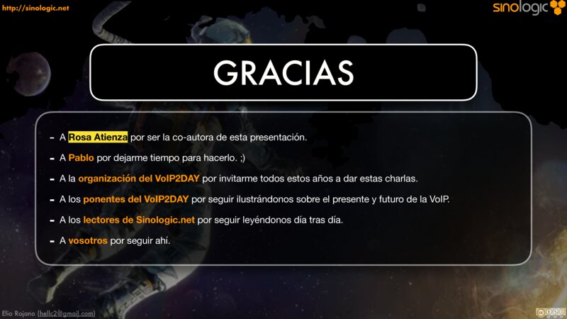 - A Pablo por dejarme tiempo para hacerlo. ;) - A la organización del VoIP2DAY por invitarme todos estos años a dar estas charlas.