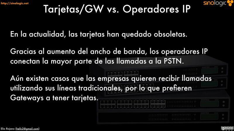 http://sinologic.net Tarjetas/GW vs. Operadores IP En la actualidad, las tarjetas han quedado obsoletas.