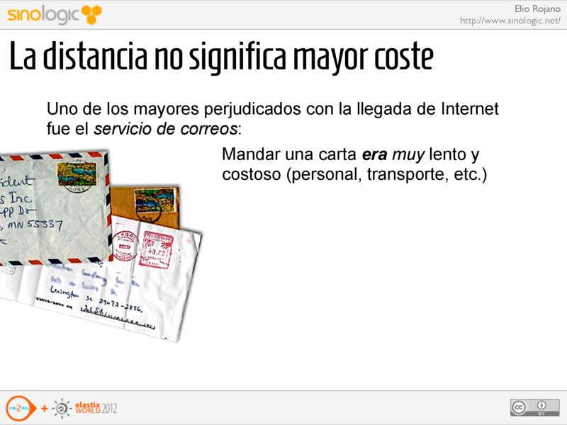 Elio Rojano http://www.sinologic.net/ La distancia no significa mayor coste Uno de los mayores perjudicados con la llegada de Internet fue el servicio de correos: