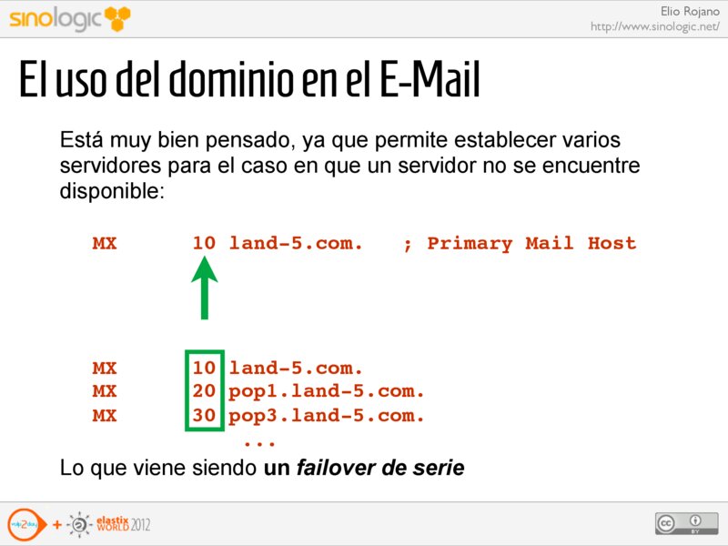 Elio Rojano http://www.sinologic.net/ El uso del dominio en el E-Mail Está muy bien pensado, ya que permite establecer varios servidores para el caso en que un servidor no se encuentre disponible: