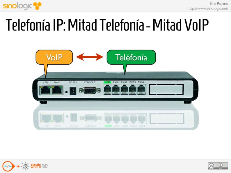 Elio Rojano http://www.sinologic.net/ Telefonía IP: Mitad Telefonía - Mitad VoIP VoIP Teléfonía