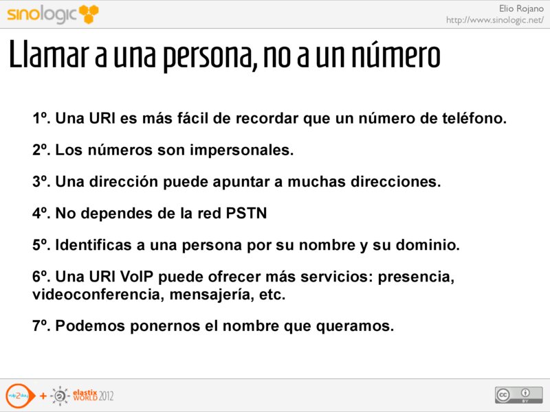 Elio Rojano http://www.sinologic.net/ Llamar a una persona, no a un número 1º. Una URI es más fácil de recordar que un número de teléfono.