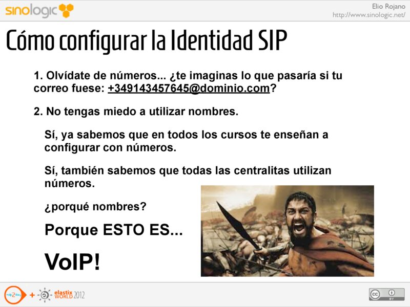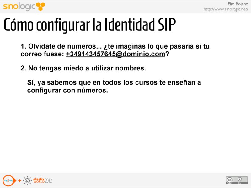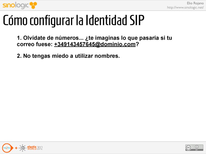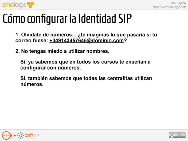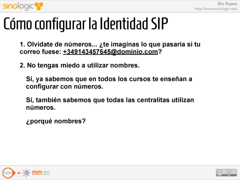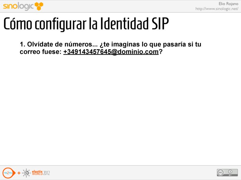 Elio Rojano http://www.sinologic.net/ Cómo configurar la Identidad SIP 1. Olvídate de números... ¿te imaginas lo que pasaría si tu correo fuese: +349143457645@dominio.com?