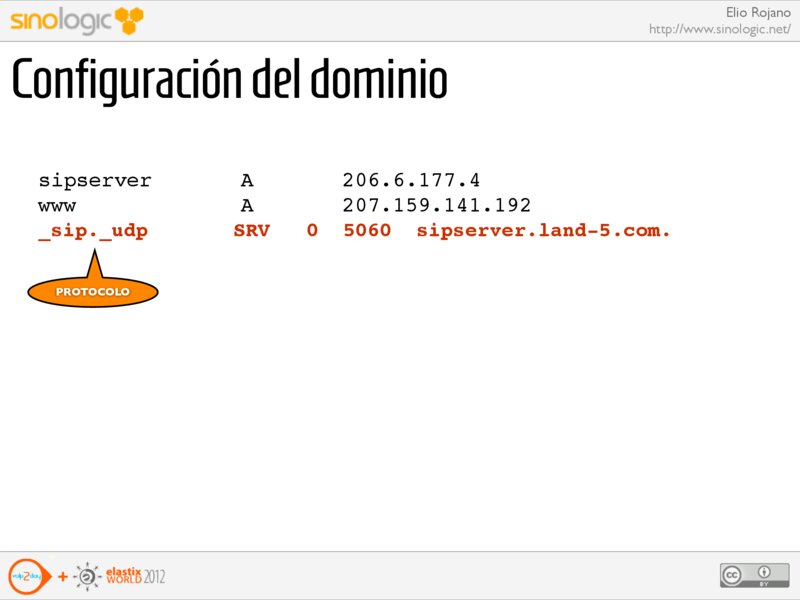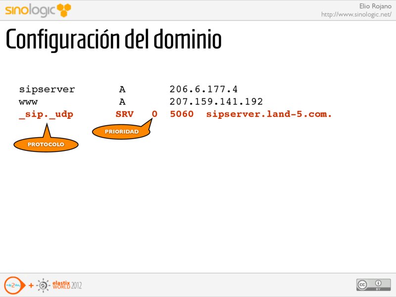 Elio Rojano http://www.sinologic.net/ Configuración del dominio sipserver www _sip._udp